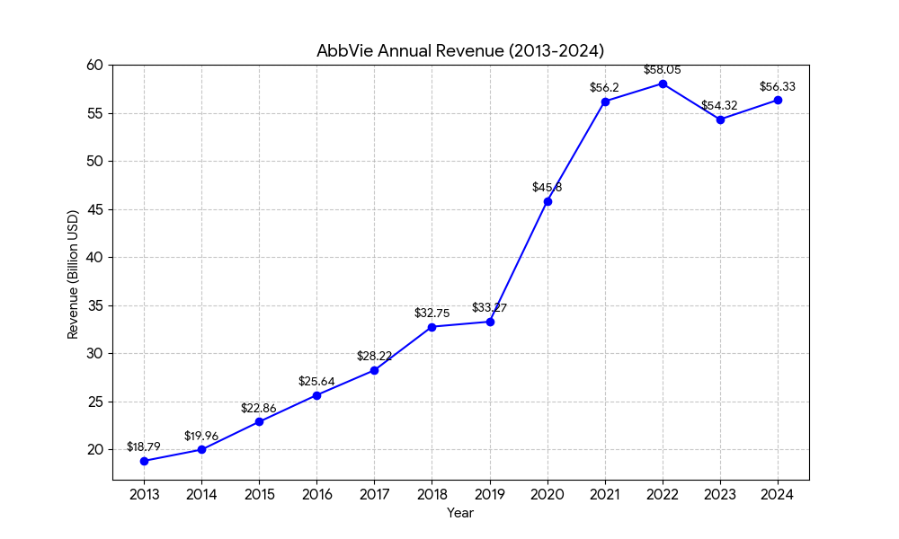 - M&A Surge (2024-2025): To accelerate growth, AbbVie engaged in multi-billion dollar acquisitions: