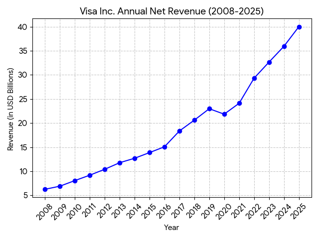 Revenue and Financials: Annual revenue has grown to over 30 billion USD with operating margins consistently around 60%. Profitability is now driven heavily by cross-border transaction fees and data processing services.